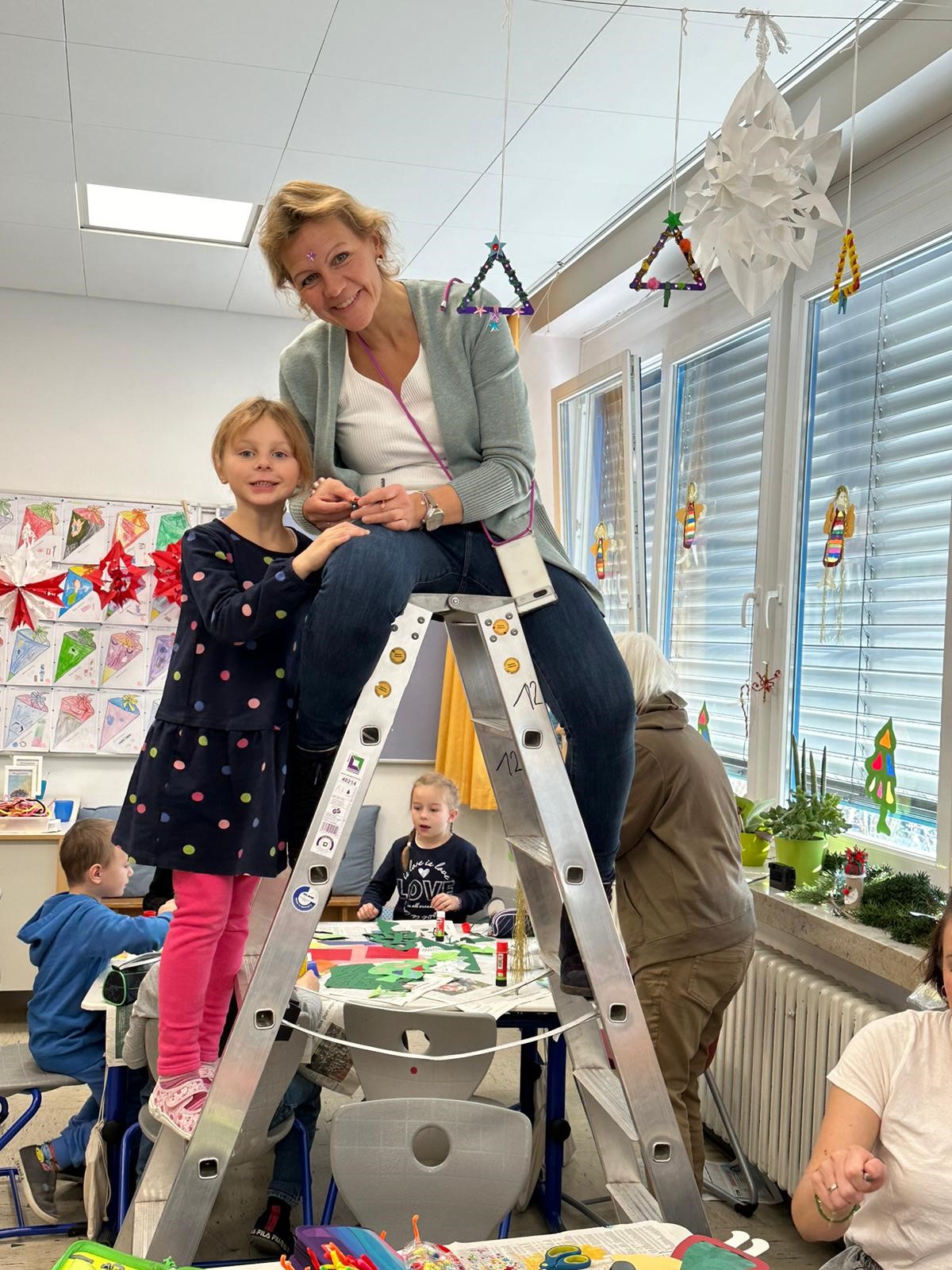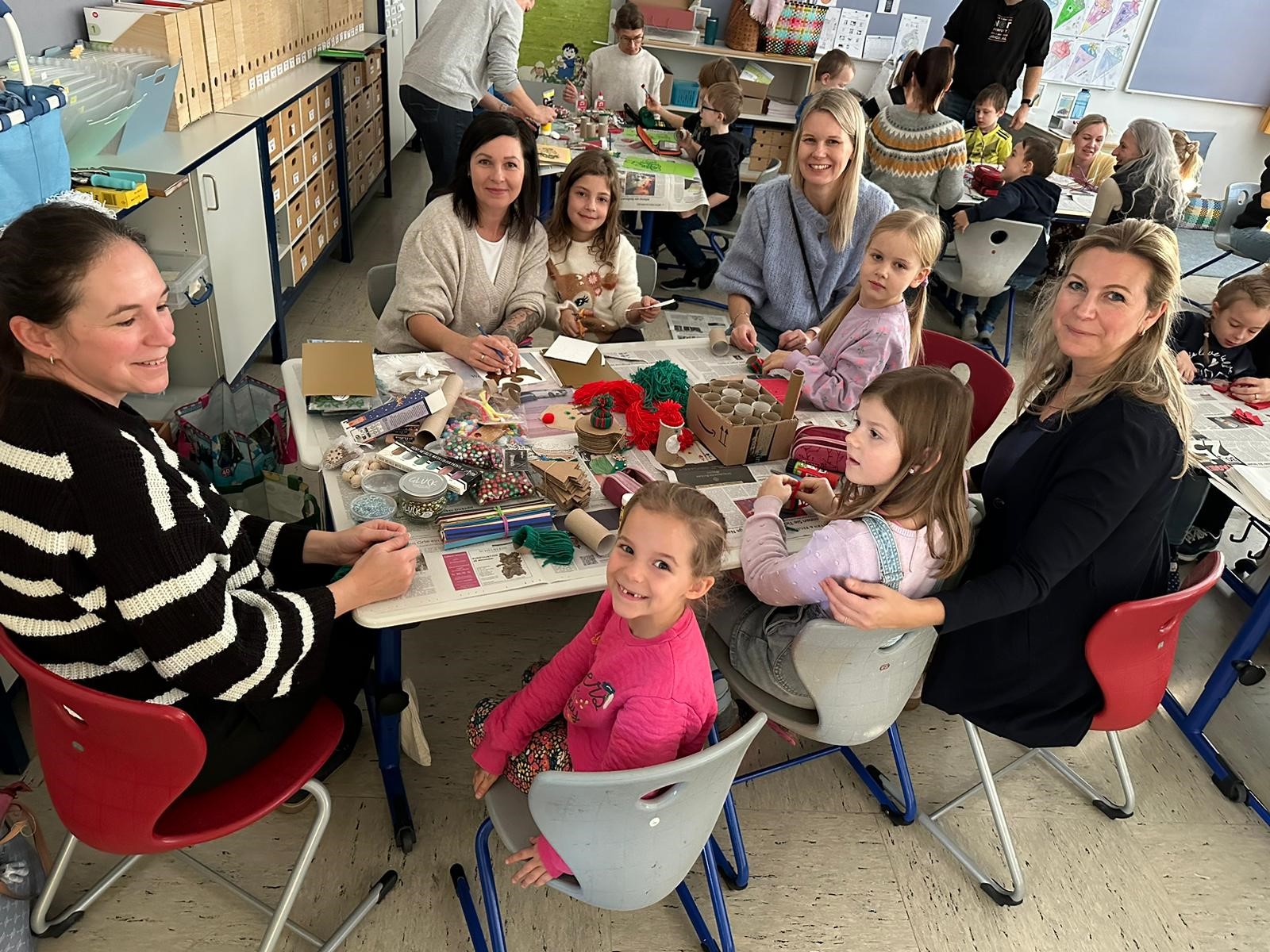 Am Freitag, den 22.11.24 luden die Kinder der Klasse 1a mit ihrer Klassenlehrkraft Frau Ehrlich zu einem weihnachtlichen Basteln im Klassenzimmer ein. Die Kinder bastelten mit fleißigen Eltern und Großeltern winterliche Dekorationen für ihr Klassenzimmer. Nach vier Stunden eifrigen Schneidens und Klebens war das Klassenzimmer der 1a fertig für die kommende Weihnachtszeit geschmückt. Danke an alle Herlferinnen und Helfer!