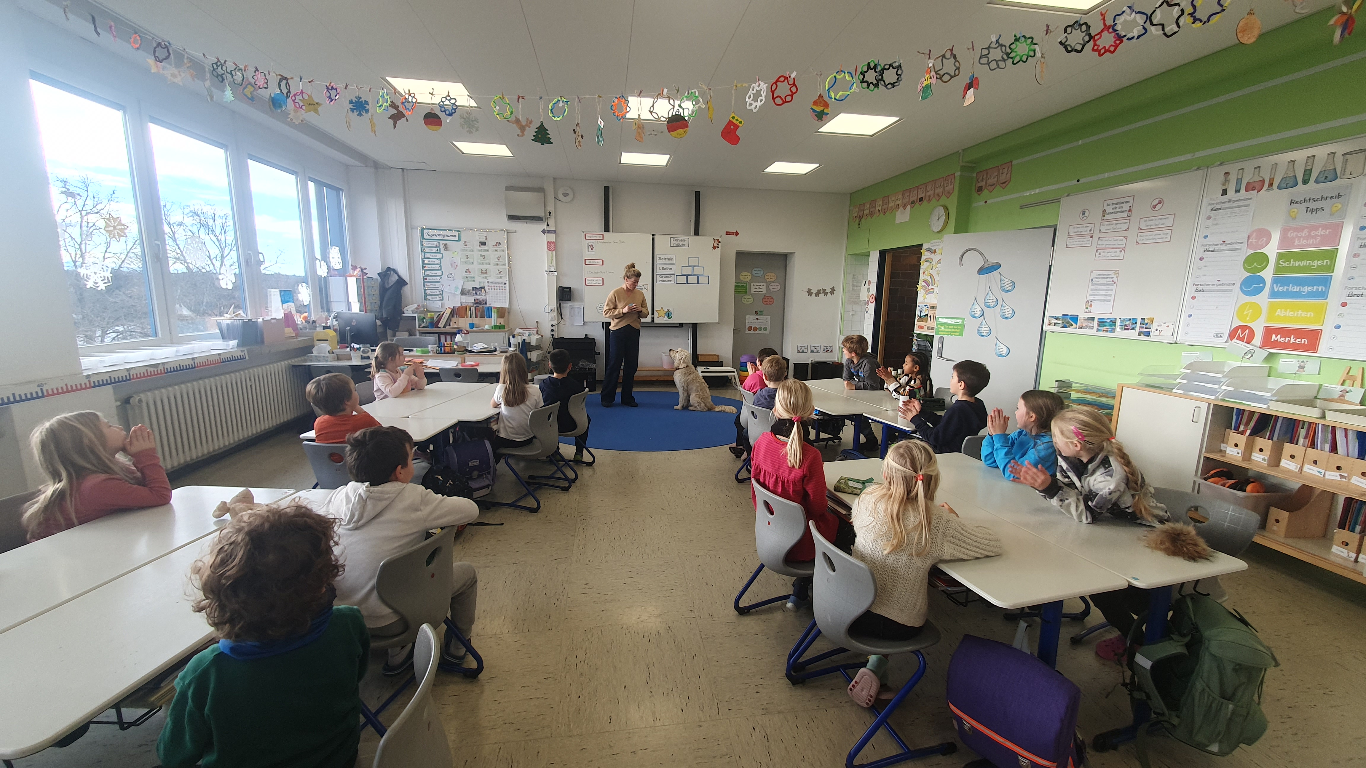 In den vergangenen Tagen hatte die Grundschule Söcking einen ganz besonderen Besucher: Schulhund Pepper war gemeinsam mit Frau Opitz in allen Klassen zu Gast!